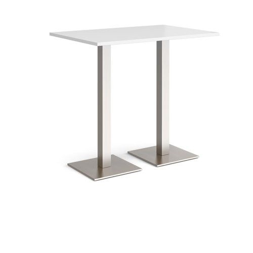 Brescia rectangular poseur table with flat square brushed steel bases 1200mm x 800mm - white
