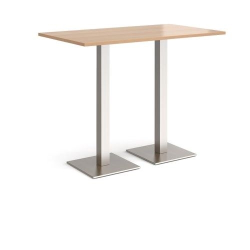 Brescia rectangular poseur table with flat square brushed steel bases 1400mm x 800mm - beech