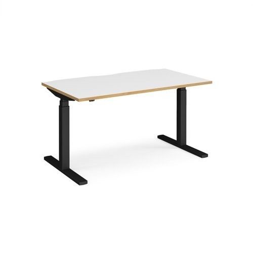 Elev8 Touch straight sit-stand desk 1400mm x 800mm - black frame, white top with oak edge