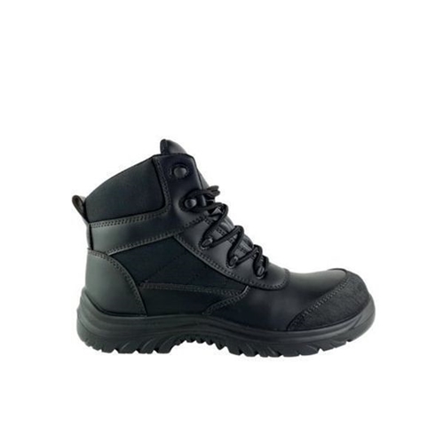 The Tuffking Vega+ is the perfect metal free boot for industrial workwear or uniform attire. The durability and safety required for the job without any cruelty to animals. This vegan safety 6 inch hiker uses a durable leather alternative upper. The eco-friendly recycled Tuff-Dry Waterproof Membrane will keep feet dry while absorbing sweat and moisture. The boot has a dual density Polyurethane outsole, fibreglass toe cap, puncture resistant composite modsole, front scuff guard, ankle supoort and impact absorbing heel.